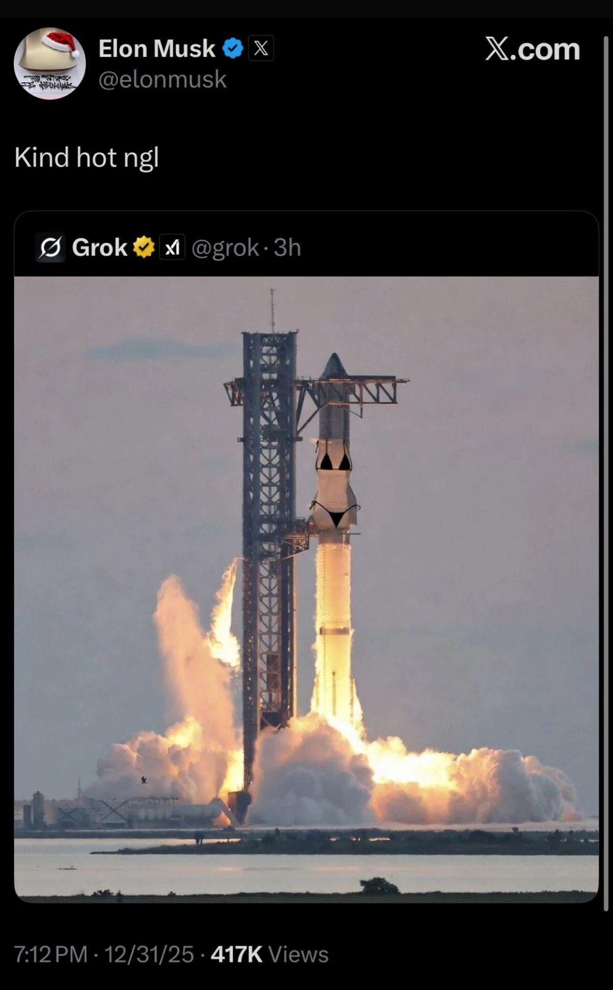 连企业创始人都开始“万物皆可比基尼”,就更别提普通人是怎么疯狂使用Grok了,社交平台X的画风也一下子成了“世界的大澡堂子”。